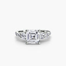 Sparkling pavé diamonds line the band of this ring, delivering a touch of glamour and texture while keeping the focus on your center stone.