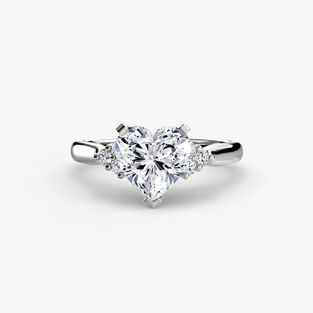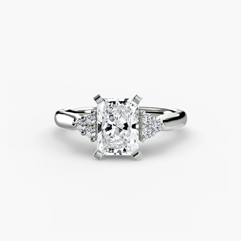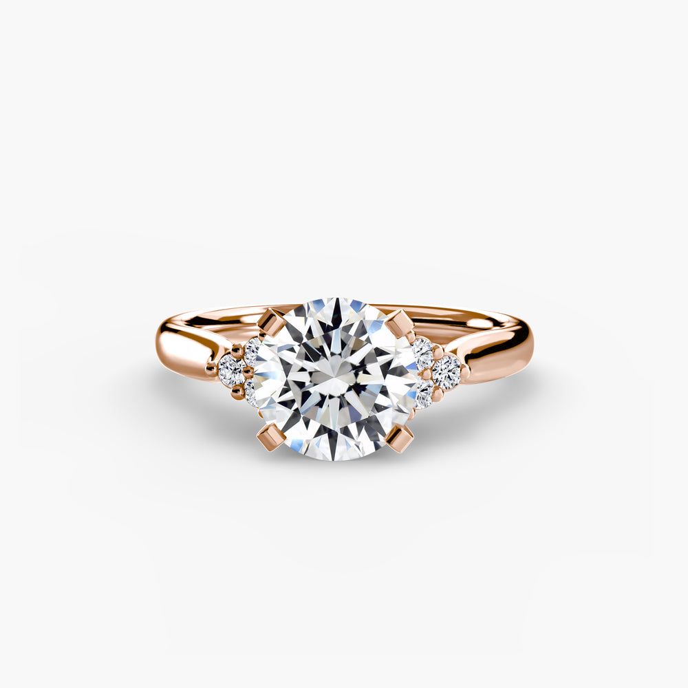 Designed with side stones that gracefully complement the center stone, this ring strikes a balance between classic elegance and added brilliance. Perfect for those who want a refined look with just the right amount of sparkle.