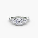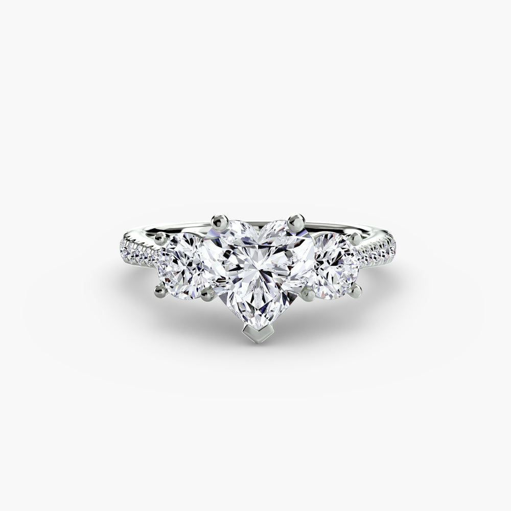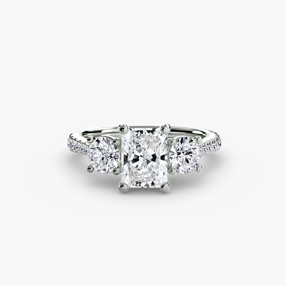 This elegant three-stone ring symbolizes your past, present, and future, elevated with a pavé band for extra sparkle and detail. A perfect union of meaning and brilliance.
